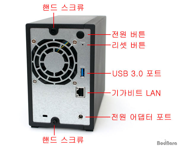 ±â°¡ºñÆ® ·£ Æ÷Æ®´Â ÃÖ´ë 1Gbps¸¦ Áö¿øÇÏ¸ç ·£ ÄÉÀ̺í·Î °øÀ¯±â³ª Çãºê¿Í ¿¬°áÇÒ ¼ö ÀÖ´Ù. 100Mbps ·£À¸·Î ¿¬°áÇØµµ NAS ÀÛµ¿Àº