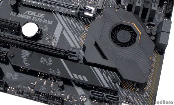Á¦Ç° ÇÑÄÒ¿¡´Â ¹æ¿ÆÇ°ú Äð¸µÆÒÀÌ º¸À̴µ¥ X570 Ĩ¼Â°ú M.2 ½½·Ô ¹ß¿À» ÇØ¼ÒÇϱâ À§ÇØ Å¾ÀçµÇ¾ú´Ù. X570 Ĩ¼Â¿ë Äð¸µÆÒÀ» »ó´Ü