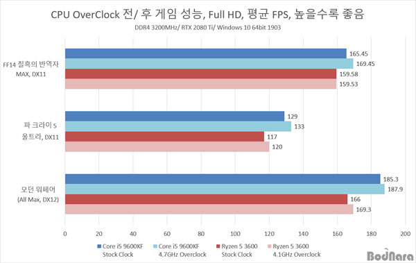 ¿À¹öŬ·° ÀÌÈÄ Æò±Õ 5ÇÁ·¹ÀÓÀÌ »ó½ÂÇØ AMD ¶óÀÌÁ¨ 5 3600°ú µ¿ÀÏ ¼º´ÉÀ» ±â·ÏÇß´Ù.