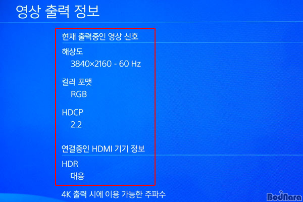 PS4 Pro¿¡¼ HDMI·Î ¿¬°áµÈ ZEN U550 UHD TV MAX HDRÀÇ ¿µ»ó Ãâ·Â Á¤º¸¸¦ »ìÆìº¸¸é 3840x2160 4K UHD