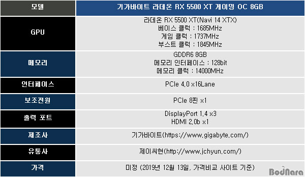 Âü°í·Î, ±â°¡¹ÙÀÌÆ® ¶óµ¥¿Â RX 5500 XT °ÔÀÌ¹Ö OC 8GBÀÇ VRAMÀº 2GB