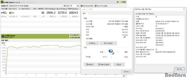 ipTIME AX8004BCM¿Í ¿¬°áÇØ ´ë¿ªÆøÀ» Å×½ºÆ®ÇÑ °ÍÀÌ´Ù. ¹«¼± ·£Ä«µå ½ºÆå»ó 2.4Gbps ¼Óµµ·Î ¸µÅ©µÇ¾ú±â¿¡