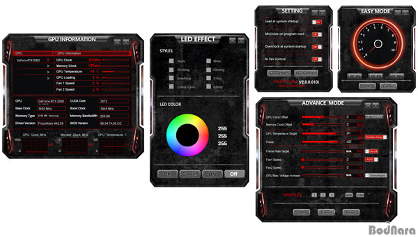 ±âº» ȸé ÇÏ´Ü¿¡ À§Ä¡ÇÑ 5°³ÀÇ ¹öưÀ» ´©¸£¸é GPU Á¤º¸¿Í À¯Æ¿¸®Æ¼ ¼³Á¤, RGB Á¦¾î, ÀÌÁö ¸ðµå¿Í °í±Þ ¸ðµåÀÇ 2°¡Áö ¿À¹öŬ·°