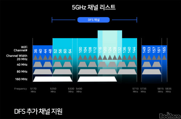 °øÀ¯±â°¡ 5GHz Á֯ļö ´ë¿¡¼ ä³Î´ç 80MHz Á֯ļö¸¦ ÀÌ¿ëÇÏ´Â °Í°ú ´Þ¸® º» Á¦Ç°Àº 160MHz Á֯ļö¸¦ ÀÌ¿ëÇØ ¹«¼±