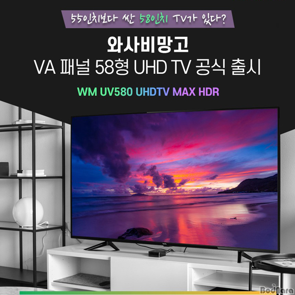 WM UV580 UHDTV MAX HDRÀº 55ÀÎÄ¡ TVº¸´Ù 3ÀÎÄ¡ °¡·® ȸéÀÌ ´õ Å©¸é¼ °¡°ÝÀº Àú·ÅÇÏ´Ù´Â ÀåÁ¡À» °¡Áø ¸ðµ¨ÀÌ´Ù. UHD 4K ÇØ»óµµÀÇ 10bit VA ÆÐ³ÎÀ» žÀçÇØ ÀÛÀº µðÅ×ÀϱîÁö Ç¥ÇöÀÌ °¡´ÉÇÏ¸ç ¾î´À °¢µµ¿¡¼³ª ¼±¸íÇÑ È¸éÀ» °¨»óÇÒ ¼ö ÀÖ´Ù.
