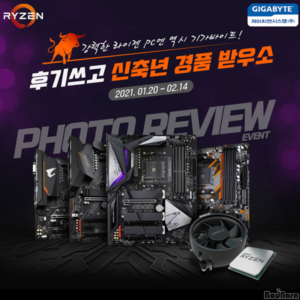 À̺¥Æ® ÀÀ¸ð ¹æ¹ýÀ¸·Î´Â À̺¥Æ® ±â°£ ³»¿¡ Á¦À̾¾Çö¿¡¼ À¯Åë ÁßÀÎ ±â°¡¹ÙÀÌÆ® B550/B450 ¸ÞÀκ¸µå¸¦ ±¸¸ÅÇϰí Èı⸦ ÀÛ¼ºÇÏ¿© À̺¥Æ® ÆäÀÌÁö¿¡ ÀÖ´Â QRÄڵ带 ÅëÇØ Á¦ÃâÇϸé ÀÚµ¿À¸·Î ÀÀ¸ð µÇ¸ç 1µî~5µî(ÃÑ 8¸í)À» ¼±Á¤ÇÏ¿© AMD Ryzen 3600 CPU, ±â°¡¹ÙÀÌÆ® B450 ¸ÞÀκ¸µå ¹× ¹®È»óǰ±ÇÀ» °æÇ°À¸·Î ÁõÁ¤ÇÑ´Ù.