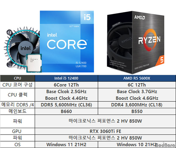 ¾Õ¼ ¾ð±ÞÇßµí ±Ý¹ø º¥Ä¡¸¶Å©ÀÇ °æ¿ì¿£ i5 12400Àº DDR5 5,600MHz CL36¿¡ R5 5600X´Â DDR4 3,600MHz CL18¸¦