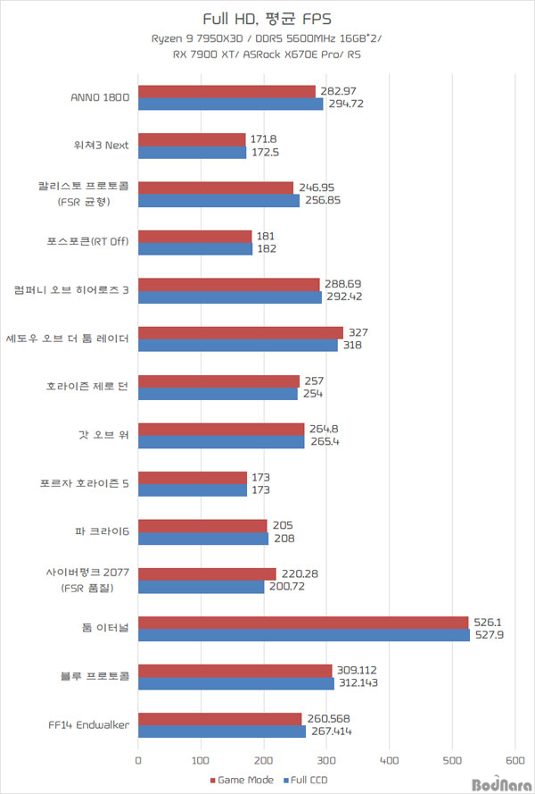 V-ij½Ã CCD¸¸ Ȱ¼ºÈÇßÀ» ¶§ÀÇ °ÔÀÓ ¼º´ÉÀ» ºñ±³Çß´Ù. ¸Þ¸ð¸®´Â DDR5 5600MHz 16GB*2, ±×·¡ÇÈ Ä«µå´Â