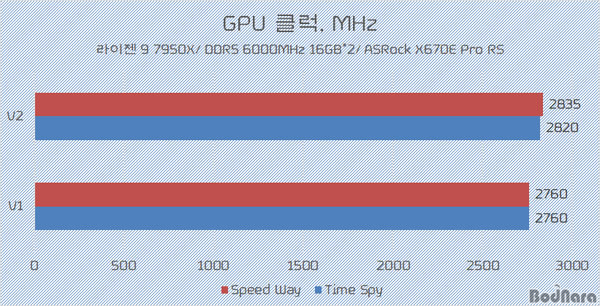 ±â´ëµÇÁö¸¸, ½ºÆ®·¹½º Å×½ºÆ® ±â°£ GPU Ŭ·°Àº V2 ¸ðµ¨ÀÌ 60MHz¼ 75MHz ´õ ºü¸¥ ¼öÁØÀ» À¯ÁöÇß´Ù.