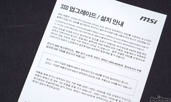 ±× ¹Û¿¡ ºü¸¥ ¾È³»¼¿Í MSI ³ëÆ®ºÏ ǰÁú º¸Áõ¼, ±×¸®°í SSD ¾÷±×·¹ÀÌµå ¼³Ä¡ ¾È³»¹®ÀÌ µé¾îÀÖ´Ù. MSI ³ëÆ®ºÏÀº Á¦Ç° ±¸¸ÅÀϷκÎÅÍ