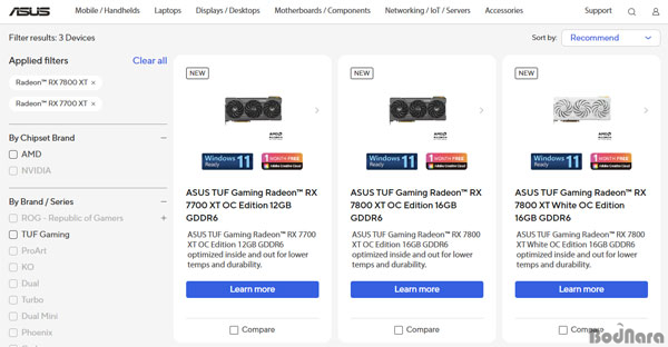 ÇöÀç ASUS ±Û·Î¹ú ȨÆäÀÌÁö¿¡ µî·ÏµÈ À̵é Á¦Ç°Àº ÃÑ 3Á¾·ù·Î, 9¿ù 13ÀÏÀÚ·Î EEC ÀÎÁõÀ» ÅëÇØ ¹«·Á 64Á¾¿¡ ´ÞÇÏ´Â Á¦Ç°ÀÌ È®ÀεǾú´Ù. ¶óµ¥¿Â RX 7800 XT¿Í ¶óµ¥¿Â RX 7700 XT ¸ðµÎ Å©°Ô´Â ROG STRIX/ TUF Gaming/ Dual/ ProArt ³× °¡Áö·Î ºÐ·ùµÇ¸ç, °¢°¢ ºí·¢/ ÈÀÌÆ®, °¢ ºÐ·ùº°·Î ·¹ÆÛ·±½º±Þ°ú ¿À¹öŬ·°, T/ A ¸ðµ¨·Î ±¸ºÐÇØ ÃÑ 64Á¾ÀÇ ¸ðµ¨ÀÌ È®ÀÎµÈ °Í.