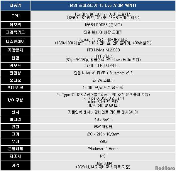 µ¿ÀÏÇÑ ÀÛ¾÷ ȯ°æÀ» Á¦°øÇØÁÖÁö ¸øÇÑ´Ù´Â Á¡À» °í·ÁÇßÀ» ¶§ °¡º¿î ¹«°Ô¿¡ ºñÁî´Ï½º ³ëÆ®ºÏ Á¶°ÇÀ» ¸¸Á·½ÃŰ´Â MSI ÇÁ·¹½ºÆ¼Áö 13 Evo A13M