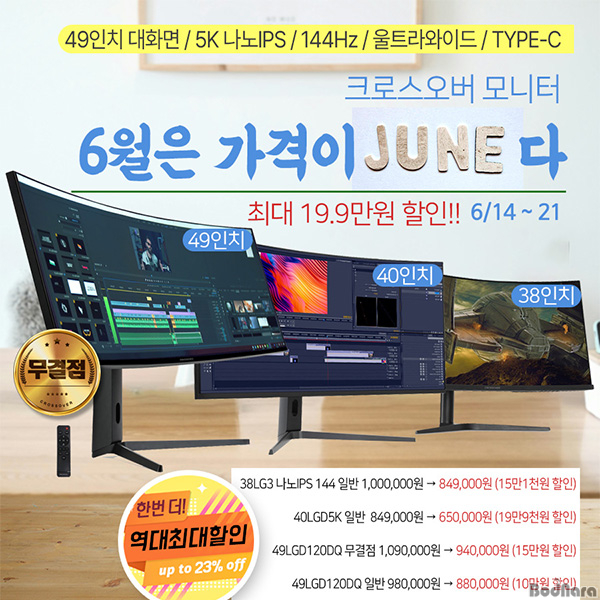 À̹ø À̺¥Æ®´Â ¸» ±×´ë·Î 6¿ù¿¡ °¡°ÝÀÌ ÁØ´Ù(ÁÙ¾îµç´Ù)¸¦ ¶æÇÏ´Â °ÍÀ¸·Î 38, 40, 49Çü µî ´ëÈ¸é ¸ð´ÏÅ͸¦ ±¸ÀÔÇϸé ÇÒÀÎÀ» ½Ç½ÃÇÑ´Ù.