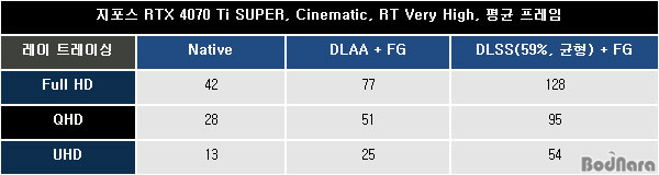 ¾ÊÀº Á¦Ç°ÀÌÁö¸¸, ¼º´ÉÀ» º¸¸é ¼ÎÀÌ´õ ¿É¼Ç¸¸ Àû¿ëÇßÀ» °æ¿ì 4K¿¡¼´Â DLSS ±ÕÇü°ú FG ¿É¼ÇÀ» Àû¿ëÇßÀ» ¶§,