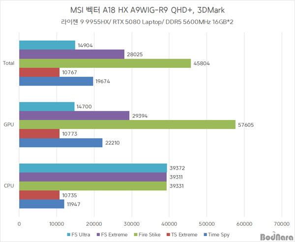 3DMark ÆÄÀ̾Ʈ¶óÀÌÅ©¿Í ŸÀÓ½ºÆÄÀÌ Å×½ºÆ®¸¦ ÀÌ¿ë, MSI º¤ÅÍ A18 HX