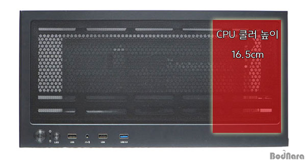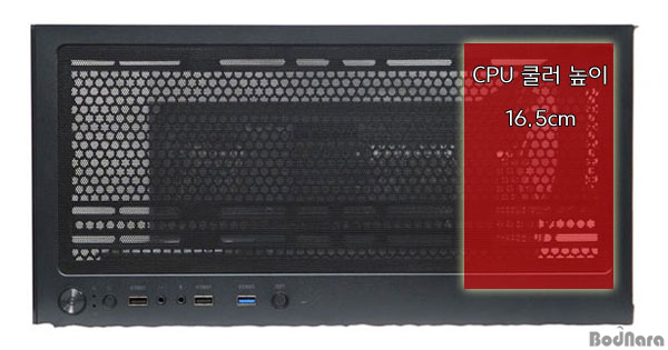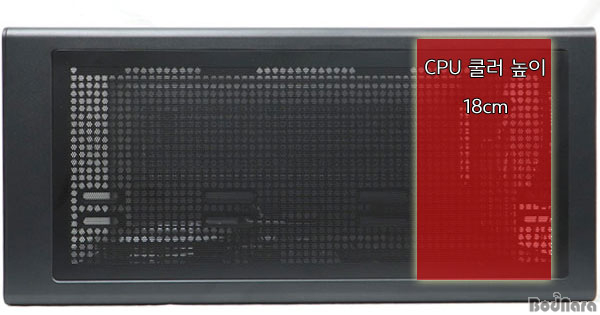 Æø 220mm·Î ´Ù¸¥ Á¦Ç°µéº¸´Ù Å©°í, ±× ¿µÇâÀ¸·Î ÃÖ´ë 180mm ³ôÀÌÀÇ CPU Ä𷯸¦ Áö¿øÇÑ´Ù.