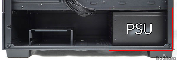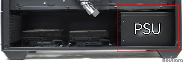 PSUÀÎ Ç® ¸ðµâ·¯ ŸÀÔ PSU¸¦ ÀåÂøÇÑ ¸ð½ÀÀ¸·Î, ½ºÅ丮Áö º£ÀÌ¿Í PSU »çÀÌ¿¡ ³Ë³ËÇÑ °ø°£À» Á¦°øÇØ