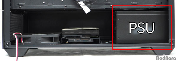 ÇÑÆí, ÇÏ´Ü PSU ¹× HDD º£ÀÌ ÀåÂøºÎ¿Í ÄÉÀ̽ºÀÇ ³ª¸ÓÁö ±¸°£À» ±¸ºÐÁþ´Â ÆÄƼ¼ÇÀº ¼¼