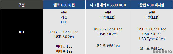 Á¶±Ý¾¿ ´Ù¸¥µ¥, °øÅëÀûÀ¸·Î Àü¿ø/ ¸®¼Â/ USB 3.2 Gen1/ USB 2.0 Æ÷Æ®°¡ Á¦°øµÈ´Ù.