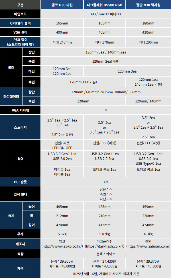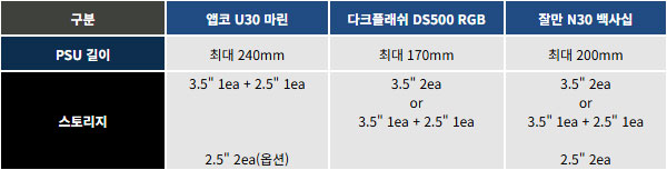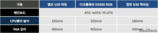 ³ôÀÌ CPU Ä𷯸¦ Áö¿øÇϰí, ±×·¡ÇÈ Ä«µå ±æÀÌ´Â ´ÙÅ©Ç÷¡½¬ DS500 RGB°¡ ¾ÛÄÚ U30 ¸¶¸°º¸´Ù 5mm ±ä ÃÖ´ë