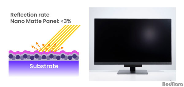 º¥Å¥ PD2706QN¿¡ Àû¿ëµÈ ³ª³ë ¸ÅÆ® ÆÐ³ÎÀÌ ¾ó¸¶³ª ºû ¹Ý»ç¸¦ ¾ïÁ¦ÇÏ´ÂÁö È®ÀÎÇϱâ À§ÇØ, ¾ÈƼ ±Û·¡¾î ÆÐ³ÎÀÌ Àû¿ëµÈ
