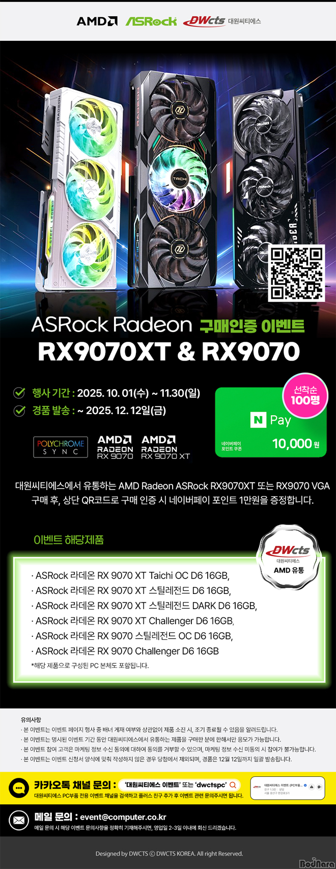 IT±â±â ¼öÀÔ/À¯Åë Àü¹®±â¾÷ÀÌÀÚ ±¹³» ÃÖ´ë ±Ô¸ðÀÇ ÃÑÆÇ ¼ºñ½º¸¦ Á¦°øÇÏ´Â ´ë¿ø¾¾Æ¼¿¡½º(´ëÇ¥ ±èº¸°æ·ÀÌ»óÈ£·Çϼº¿ø, www.dwcts.co.kr)°¡ ASRockÀÇ ¶óµ¥¿Â RX 9070 XT · RX 9070 ±×·¡ÇÈÄ«µå ±¸¸Å °í°´À» À§ÇÑ ÇýÅà À̺¥Æ®¸¦ ÁøÇàÇÑ´Ù°í ¹ßÇ¥Çß´Ù.