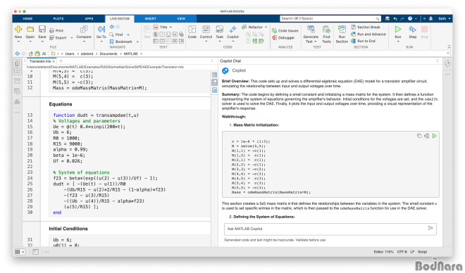 • äÆÃ ¹× ÇнÀ(Chat and Learn): »ç¿ëÀÚ´Â ¸ÅÆ®·¦ ÄÚÆÄÀÏ·µ äÆÃ(MATLAB Copilot Chat)¿¡¼ Áú¹®À» ÇÏ°í ¸Å½º¿÷½º ¹®¼¿Í ½ÇÁ¦ ÄÚµå ¿¹Á¦¸¦ ±â¹ÝÀ¸·Î ´äº¯À» ¹Þ¾Æ, ¸ÅÆ®·¦ ȯ°æÀ» ¹þ¾î³ªÁö ¾Ê°íµµ ½Å·ÚÇÒ ¼ö ÀÖ°í »óȲ¿¡ ¸Â´Â Á¤º¸¿¡ ºü¸£°Ô Á¢±ÙÇÒ ¼ö ÀÖ´Ù.