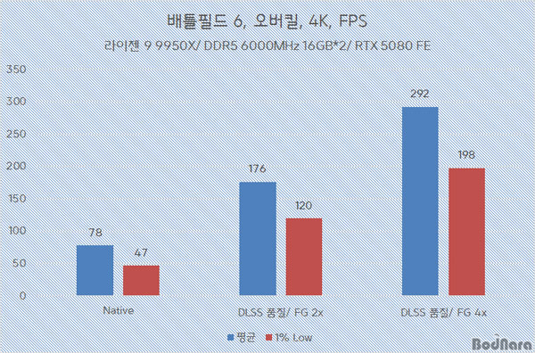 2 ¿É¼ÇÀº Æò±Õ 176ÇÁ·¹ÀÓ, DLSS ǰÁú°ú MFG 4 ¿É¼ÇÀº Æò±Õ 292 ÇÁ·¹ÀÓÀ» ³»ÁØ´Ù.