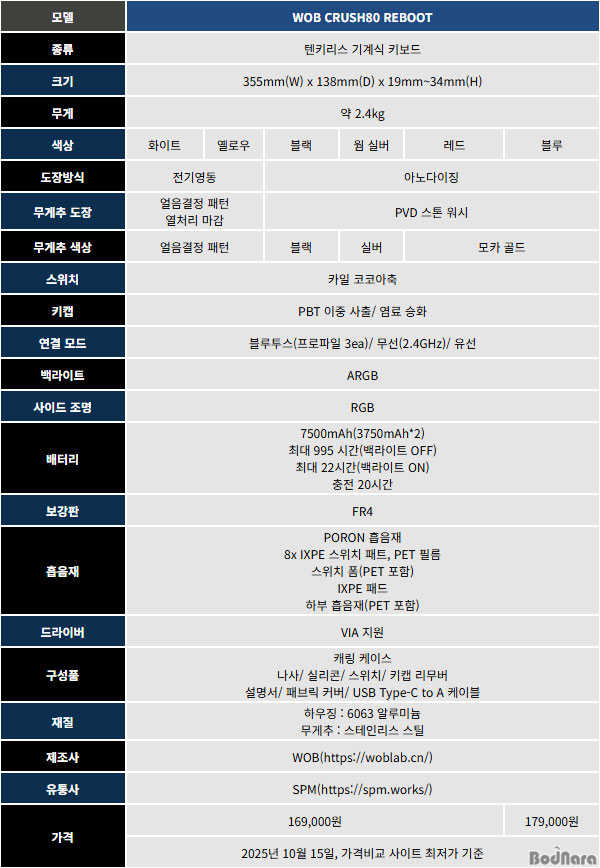 ¹«°ÔÃß, Àú¼ÒÀ½ ½ºÀ§Ä¡µîÀ» »ç¿ëÇØ ¸¸µé¾îÁø´Ù. À̹ø ±â»ç¿¡¼ ´Ù·ê WOB CRUSH80 ¸®ºÎÆ®µµ º¸±ÞÇü ±â°Ô½Ä Űº¸µå°¡