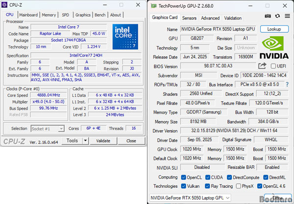 ·¹ÀÌÅ© ±â¹Ý ÀÎÅÚ ÄÚ¾î 7 240H(6 P-ÄÚ¾î & 4 E-ÄÚ¾î)¿Í ¿£ºñµð¾Æ ÁöÆ÷½º RTX 5050 ·¦Å¾ ¹öÀüÀÌ