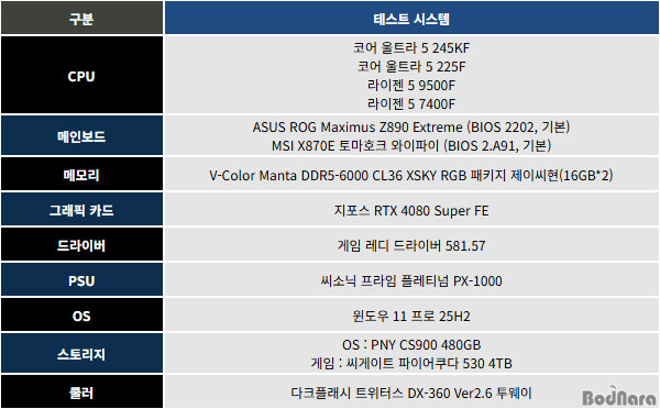 ¸Þ¸ð¸®´Â DDR5 6000MHz 16GB*2, OS´Â À©µµ¿ì 11 25H2¸¦ ÀÌ¿ëÇß´Ù.