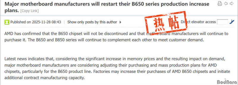 ´çÃÊ AMD´Â AM5 Ç÷§Æû Àüȯ °úÁ¤¿¡¼ B650 Ĩ¼ÂÀ» ´Ü°èÀûÀ¸·Î Á¤¸®Çϰí, ÈÄ¼Ó Ä¨¼ÂÀÎ B850 Áß½ÉÀ¸·Î ¸ÞÀνºÆ®¸² ½ÃÀåÀ» ÀçÆíÇÒ °èȹÀ̾ú´Ù. ÀÌ °èȹ¿¡ µû¶ó B650Àº 2025³â 10¿ù °æ »ý»ê Á¾·á °èȹÀÌ ¾÷°è¿¡ °øÁöµÇ¾ú°í, ÀϺΠº¸µå Á¦Á¶»çµéµµ Àç°í ¼ÒÁø¿¡ µé¾î°£ °ÍÀ¸·Î ÀüÇØÁ³´Ù.