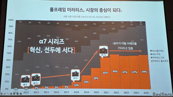 È帧°ú ¼Ò´Ï Ç®ÇÁ·¹ÀÓ ¹Ì·¯¸®½º Àü·«À» ¼³¸íÇß´Ù. Ç®ÇÁ·¹ÀÓ ¹Ì·¯¸®½º µîÀå ÀÌÀü¿¡´Â APS-C DSLR°ú ¹Ì·¯¸®½º°¡ ½ÃÀåÀÇ