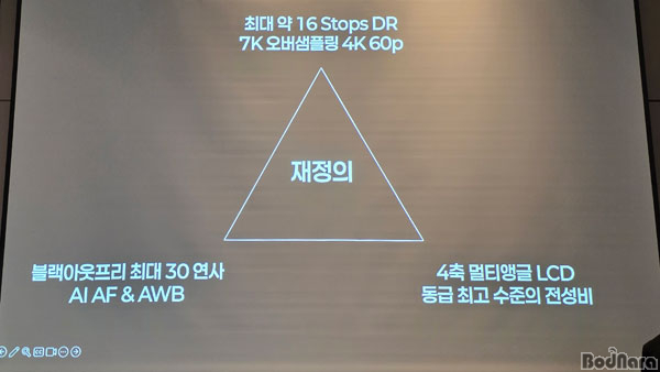 7K ¿À¹ö»ùÇøµ 4K 60p ¿µ»ó, ºí·¢¾Æ¿ôÇÁ¸® ÃÖ´ë 30¿¬»ç¿Í Çâ»óµÈ AI ±â¹Ý AF¿Í AWB, 4Ãà ¸ÖÆ¼ ¾Þ±Û LCD,