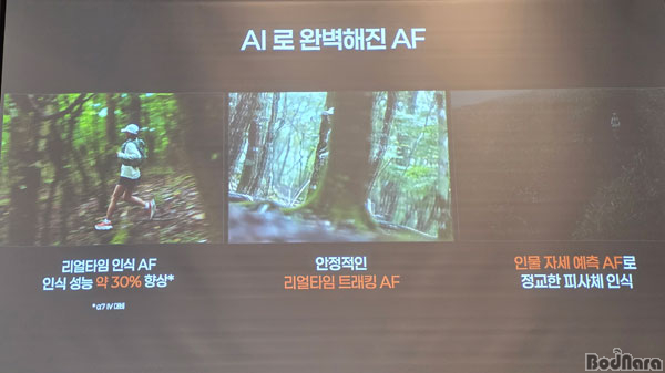 °íÁ¤¹Ð ¹× AI·Î °ÈµÈ AF´Â ÇÇ»çü ÀνÄÀ²À» °³¼±Çϰí, ÀÚµ¿ ¸ðµå·Î ½Å¼ÓÇÑ ÇÇ»çü Æ÷Âøµµ Áö¿øÇÑ´Ù.