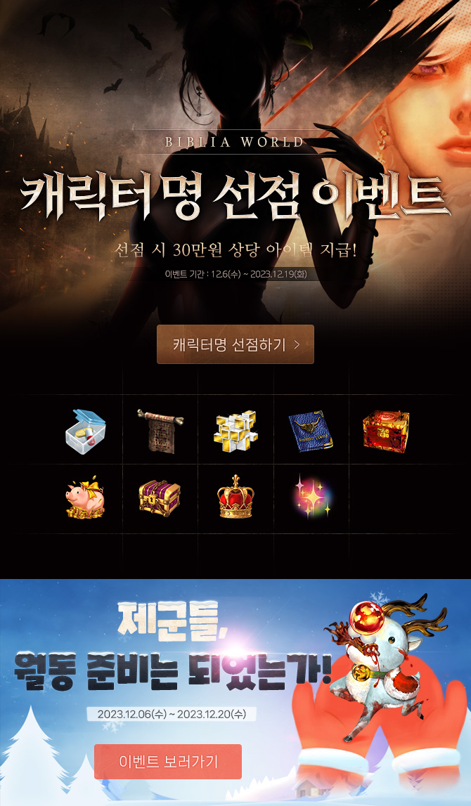 ´õºÒ¾î 12¿ù °Ü¿ï À̺¥Æ®·Î 12¿ù µ¿¾È Á¢¼Ó ÈÄ ÀÏÀÏ ¹Ì¼Ç ´Þ¼º ½Ã ´Ù¾çÇÑ ¾ÆÀÌÅÛÀ» Áö±ÞÇÏ´Â À̺¥Æ®µµ µ¿½Ã¿¡ ÁøÇà ÁßÀÌ´Ù.