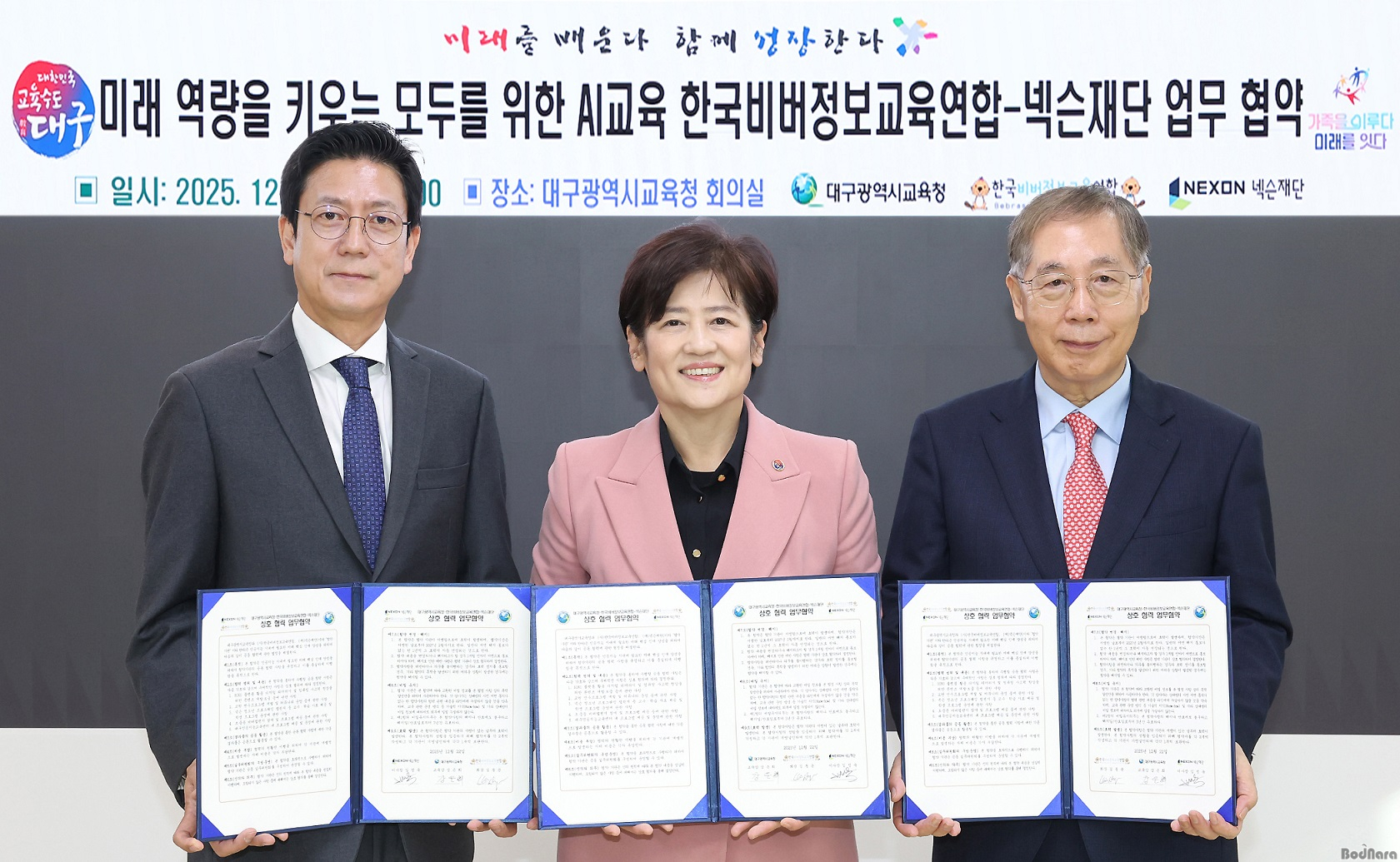 ³Ø½¼Àç´Ü(ÀÌ»çÀå ±èÁ¤¿í)Àº (»ç)Çѱ¹ºñ¹öÁ¤º¸±³À°¿¬ÇÕ(BIKO, ȸÀå ±èµ¿À±), ´ë±¸±¤¿ª½Ã±³À°Ã»(±³À°°¨ °­ÀºÈñ)°ú ÇÔ²² ÄÄÇ»ÆÃ »ç°í·Â ¹× Á¤º¸±³À° ¿ª·® °­È­¸¦ À§ÇÑ 3ÀÚ ¾÷¹«Çù¾à(MOU)À» ü°áÇß´Ù°í ¹àÇû´Ù.
