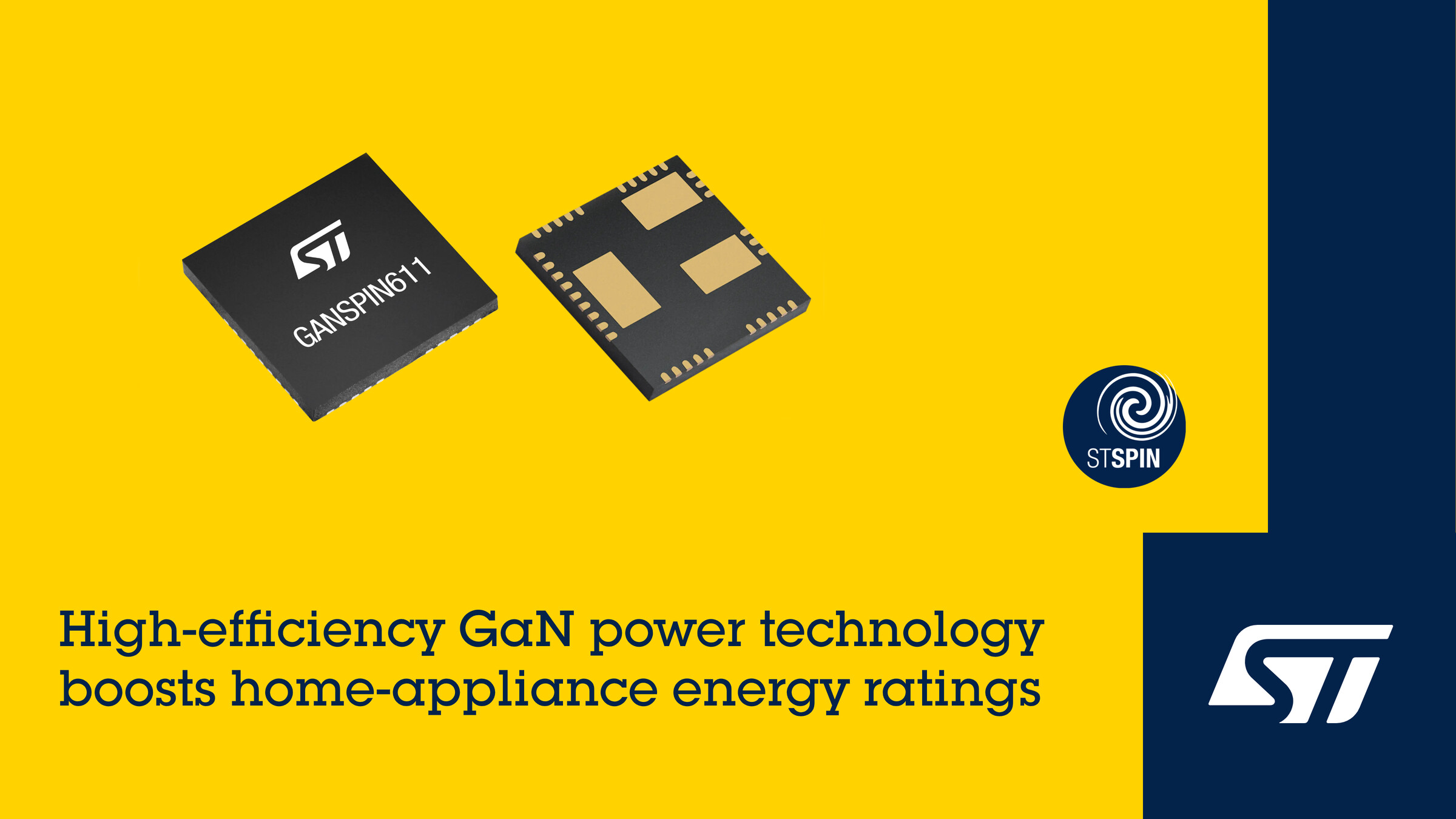 STÀÇ »õ·Î¿î Á¦Ç°±ºÀÇ Ã¹ ¹øÂ° Á¦Ç°ÀÎ GaNSPIN611°ú GaNSPIN612´Â ÃÖ´ë 400W±îÁö ¸ðÅÍ¿¡ Àü·ÂÀ» °ø±ÞÇÒ ¼ö ÀÖÀ¸¸ç, °¡Á¤¿ë ¹× »ê¾÷¿ë ÄÄÇÁ·¹¼, ÆßÇÁ, ÆÒ, ¼º¸ µå¶óÀ̺갡 ¿©±â¿¡ ÇØ´çµÈ´Ù. µÎ µð¹ÙÀ̽º´Â ÇÉ È£È¯¼ºÀ» °®Ãß°í ÀÖ¾î ¼Õ½±°Ô ¼³°è¸¦ È®ÀåÇÒ ¼ö ÀÖ´Ù. GaNSPIN611Àº ÇöÀç ¿ ¼º´ÉÀÌ °ÈµÈ 9mm × 9mm QFN ÆÐŰÁö·Î »ý»ê ÁßÀ̸ç, °¡°ÝÀº $4.44¿¡¼ ½ÃÀ۵ȴÙ.