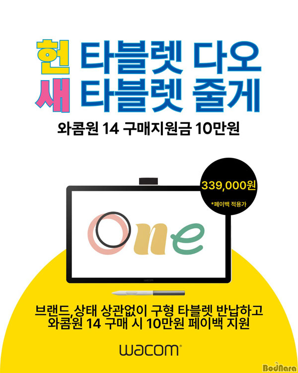 ¿ÍÄÞ(Wacom)ÀÇ Çѱ¹¹ýÀÎ ¿ÍÄÞÄÚ¸®¾Æ(´ëÇ¥ À̵¥ ³ëºÎŸī, www.wacom.com)°¡ ¿ÍÄÞ ¿ø 14 ¾×Á¤Å¸ºí·¿ ±¸¸Å ½Ã, ±¸Çü Ÿºí·¿À» ¹Ý³³Çϸé 10¸¸ ¿øÀ» º¸»óÇÏ´Â ‘¿ÍÄÞ ¿ø 14 º¸»óÆÇ¸Å’ ÇÁ·Î¸ð¼ÇÀ» ÁøÇàÇÑ´Ù.