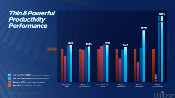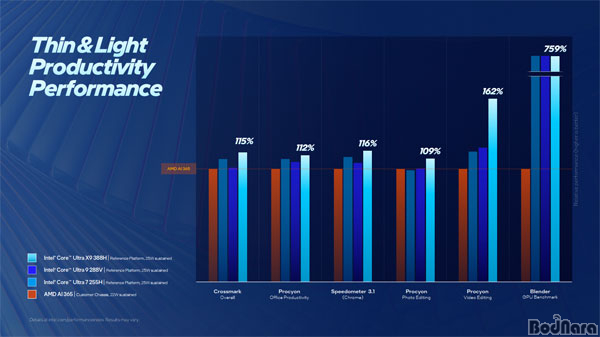 150U ´ëºñ ÃÖ´ë 65% °³¼±, ÄÚ¾î ¿ïÆ®¶ó 7 255H ´ëºñ ÃÖ´ë 57% °³¼±, AMD ¶óÀÌÁ¨ AI 9 365 ´ëºñ ÃÖ´ë 78% °³¼±µÇ¾ú´Ù.