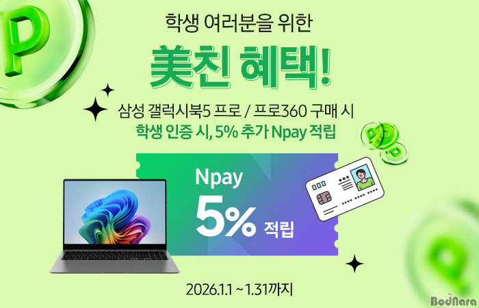 »ï¼ºÀüÀÚ °ø½ÄÆÄÆ®³Ê»ç À¯´Ï¾¾¾Ø¾¾´Â ³×À̹ö ½º¸¶Æ®½ºÅä¾î¿¡¼ '»ï¼º ½ºÆ©´øÆ® ÆäÀ̹é' À̺¥Æ®¸¦ ÁøÇàÇÑ´Ù. °¶·°½ÃºÏ5 ÇÁ·Î ½Ã¸®Á ±¸¸ÅÇÏ´Â Çлý °í°´ ´ë»óÀ¸·Î Ä«µå»ç °£Æí°áÁ¦ ½Ã 7% ÇÒÀΰú ³×À̹öÆäÀÌ 5% Ãß°¡ Àû¸³ ÇýÅÃÀ» Á¦°øÇÏ´Â À̹ø ÇÁ·Î¸ð¼ÇÀº 2026³â 1¿ù 1ÀϺÎÅÍ 31ÀϱîÁö ÇÑ ´Þ°£ ÁøÇàµÈ´Ù.