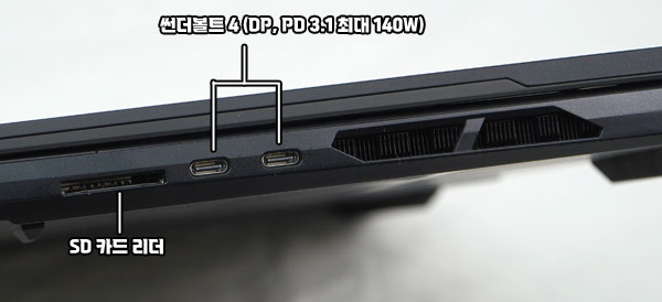 140W¸¦ Áö¿øÇÏ´Â ½ã´õº¼Æ® 4 Æ÷Æ® 2°³¿Í USB 3.2 Gen2 Æ÷Æ® 2°³, ¿Àµð¿À ÄÞº¸ ¹× SD Ä«µå ¸®´õ, HDMI 2.1,
