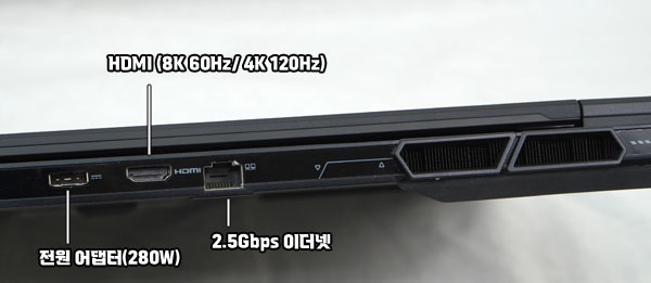 MSI ½ºÅÚ½º 18 HX AI A2XWHG-U9 QHD+ÀÇ I/O Æ÷Æ® ±¸¼ºÀº DP Ãâ·Â°ú PD 3.1 ±Ô°Ý
