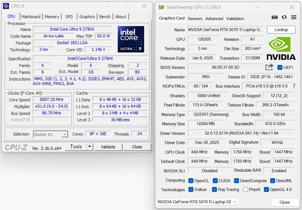¸ðµ¨ÀÎ ÄÚ¾î ¿ïÆ®¶ó 9 275HX, ÁöÆ÷½º RTX 50 ½Ã¸®Áî Áß °í¼º´É ¸ðµ¨ÀÎ ÁöÆ÷½º RTX 5070 Ti ·¦Å¾ ¸ðµ¨ÀÌ Å¾ÀçµÇ¾ú´Ù.