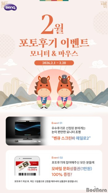 ´Ù°¡¿Ã »õÇб⸦ ¸ÂÀÌÇÏ¿© ÁøÇàÇÏ´Â À̹ø À̺¥Æ®´Â 2¿ù ÇÑ ´Þ °£ º¥Å¥ ¸ð´ÏÅÍ ¶Ç´Â ¸¶¿ì½º¸¦ ±¸ÀÔÇÏ°í Æ÷ÅäÈı⸦ ÀÛ¼ºÇÑ µÚ, ±¸±ÛÆûÀ¸·Î ½ÅûÇÑ ¸ðµç ºÐµé¿¡°Ô ¸ð¹ÙÀÏ ¹®È­»óǰ±Ç(1¸¸¿ø±Ç)À» ÁõÁ¤Çϰí, ¿ì¼ö ÈıâÀÚ 1¸í¿¡°Ô´Â ´«ÀÌ Æí¾ÈÇÑ ¸ð´ÏÅÍ Á¶¸í ‘º¥Å¥ ½ºÅ©¸°¹Ù ÇìÀÏ·Î 2’¸¦ Ãß°¡·Î ÁõÁ¤ÇÏ´Â Çà»çÀÌ´Ù.