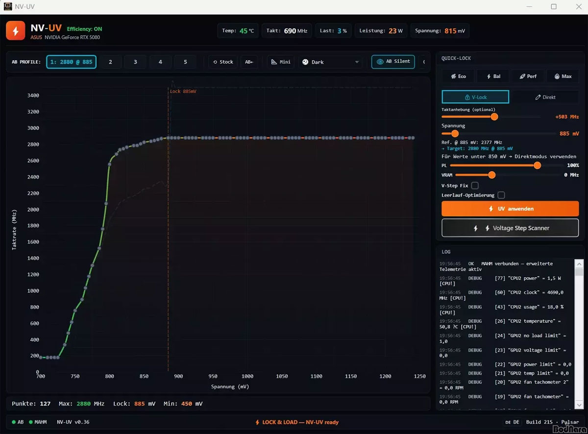 ÃÖ±Ù °ø°³µÈ 'NV-UV'´Â ÁöÆ÷½º RTX 50 ½Ã¸®Á ´ë»óÀ¸·Î ÇÑ ÀÚµ¿ ¾ð´õº¼ÆÃ µµ±¸·Î, ±âÁ¸Ã³·³ Àü¾Ð-Ŭ·° °î¼±À» Á÷Á¢ Á¶Á¤ÇÏÁö ¾Ê¾Æµµ °£´ÜÇÑ ¼³Á¤¸¸À¸·Î ¾ð´õº¼ÆÃÀ» Àû¿ëÇÒ ¼ö ÀÖ´Â °ÍÀÌ Æ¯Â¡ÀÌ´Ù. RTX 50 ½Ã¸®Áî´Â ºí·¢À£ ¾ÆÅ°ÅØÃ³ ±â¹Ý GPU·Î ÀÌÀü ¼¼´ë¿Í ´Þ¸® NVAPI¸¦ ÅëÇÑ Àü¾Ð-Ŭ·° °î¼± Á÷Á¢ ¼öÁ¤ÀÌ Á¦ÇÑµÇ¸é¼ ¼öµ¿ ¾ð´õº¼ÆÃ ÀÛ¾÷ÀÌ ÀÌÀüº¸´Ù ¹ø°Å·Î¿öÁ³´Âµ¥, NV-UV´Â ÀÌ·¯ÇÑ ±¸Á¶ º¯È¸¦ °í·ÁÇØ ÀÚµ¿ÈµÈ ¹æ½ÄÀ¸·Î ¾ð´õº¼ÆÃ °ªÀ» ã¾ÆÁÖ´Â º¸Á¶ µµ±¸·Î °³¹ßµÆ´Ù.