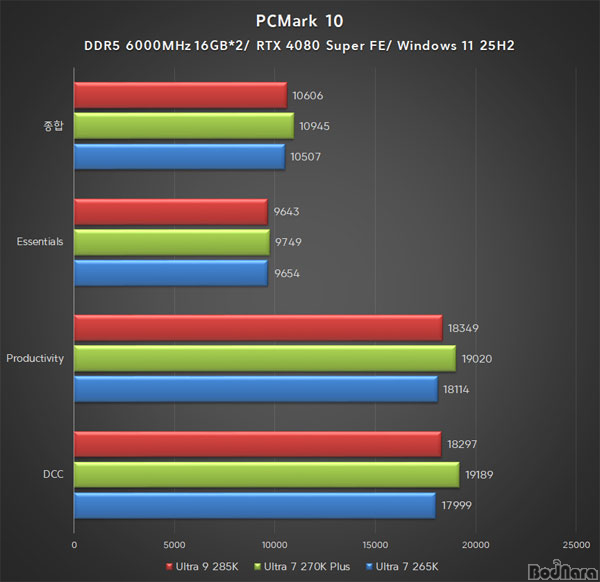 Å×½ºÆ®ÇØ ¼º´ÉÀ» Æò°¡ÇÏ´Â PCMark 10 °á°ú¸¦ º¸¸é, ÄÚ¾î ¿ïÆ®¶ó 7 270K Plus°¡ Ä«Å×°í¸®º° ÀÛ¾÷ ¼º´É°ú Á¾ÇÕ