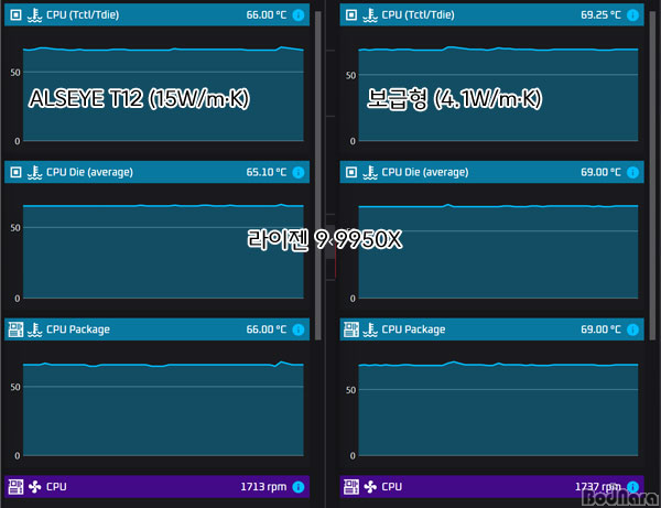 »ç¿ëÇßÀ» ¶§¸¦ ºñ±³Çϸé, Å×½ºÆ® ±¸°£¿¡¼ ÈÄÀÚÀÇ °æ¿ì CPU ¿Âµµ°¡ ¾à 3¡É ~ 4¡É °¡·® ³·°Ô ÃøÁ¤µÇ¾ú´Ù.