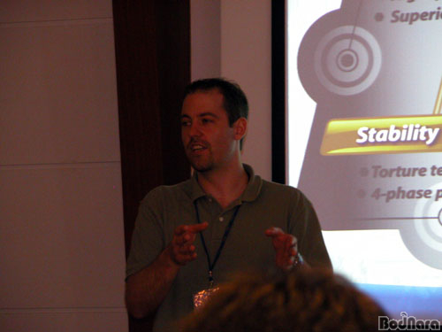 ABIT °øÀå¿¡ °ü·ÃµÈ À̾߱⸦ Çϰí ÀÖ´Â ABIT ±Û·Î¹ú ¸¶ÄÉÆÃ µð·ºÅÍ.