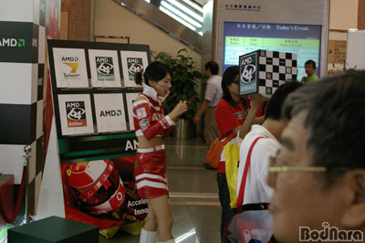 Hall 4¿¡ À§Ä¡ÇÑ AMD ºÎ½º¿Í ÀÔ±¸¿¡ Àü½ÃµÈ ·¹À̽ÌÄ«